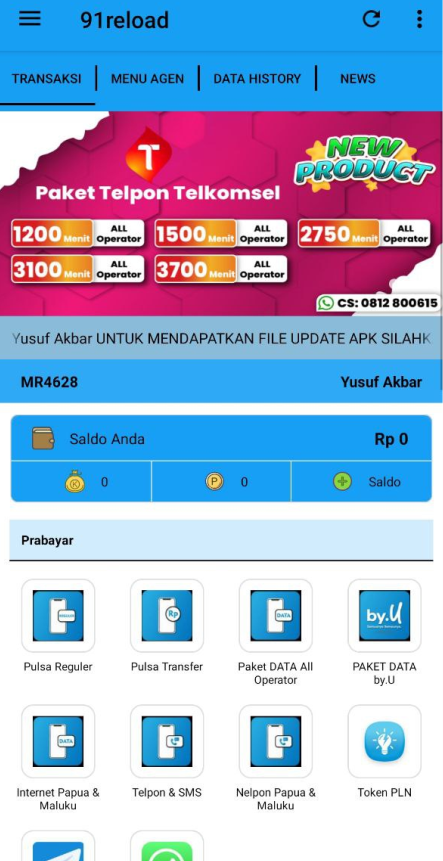 Saya penjual perabotan rumah tangga, keliling sambil jualan pulsa pakai aplikasi 91 Reload, aplikasinya oke banget..